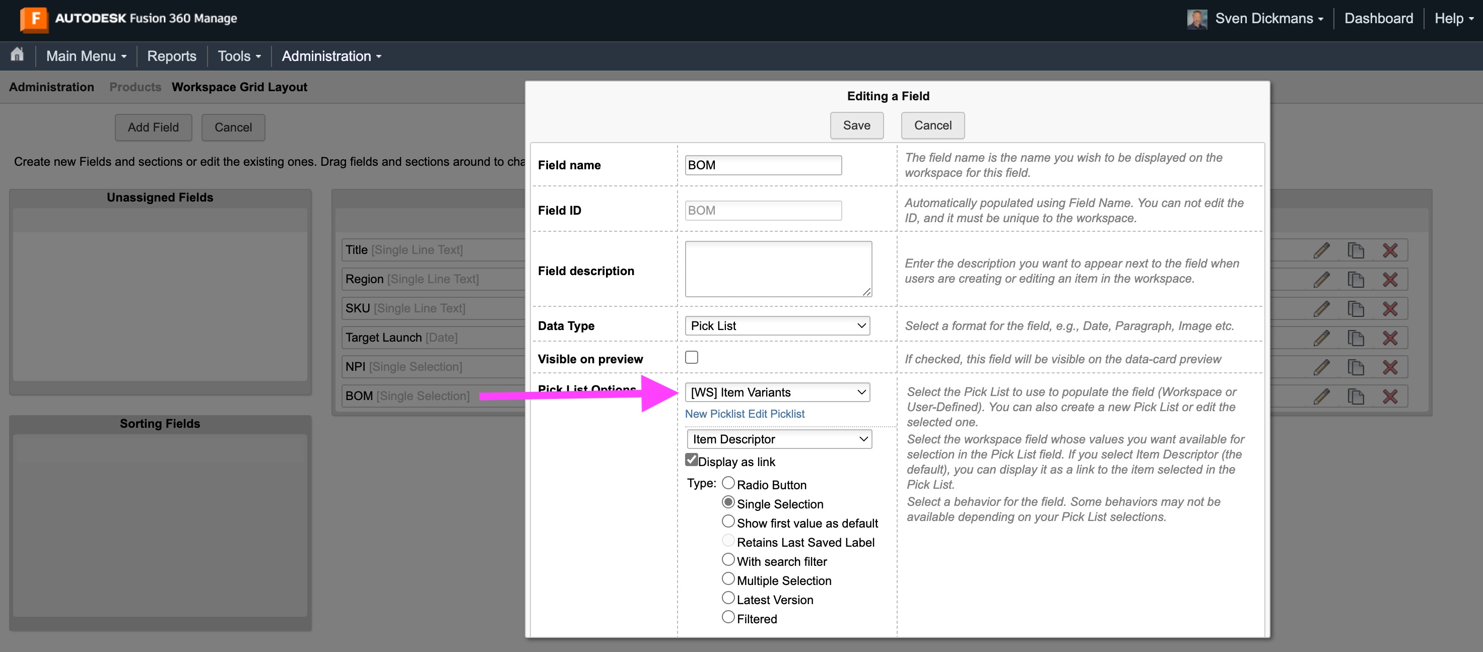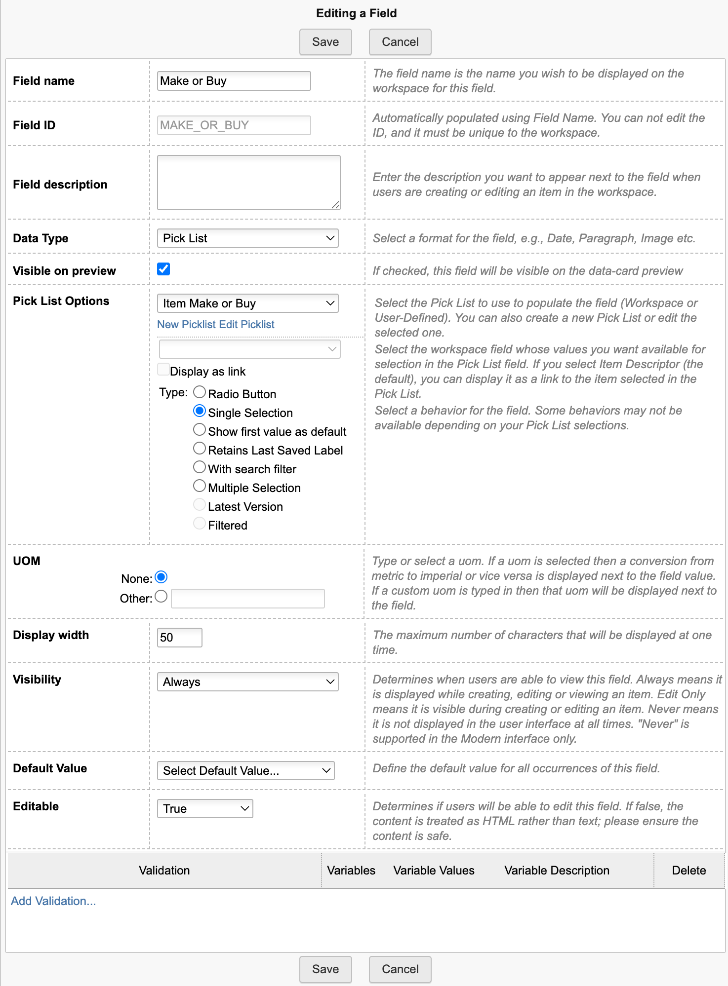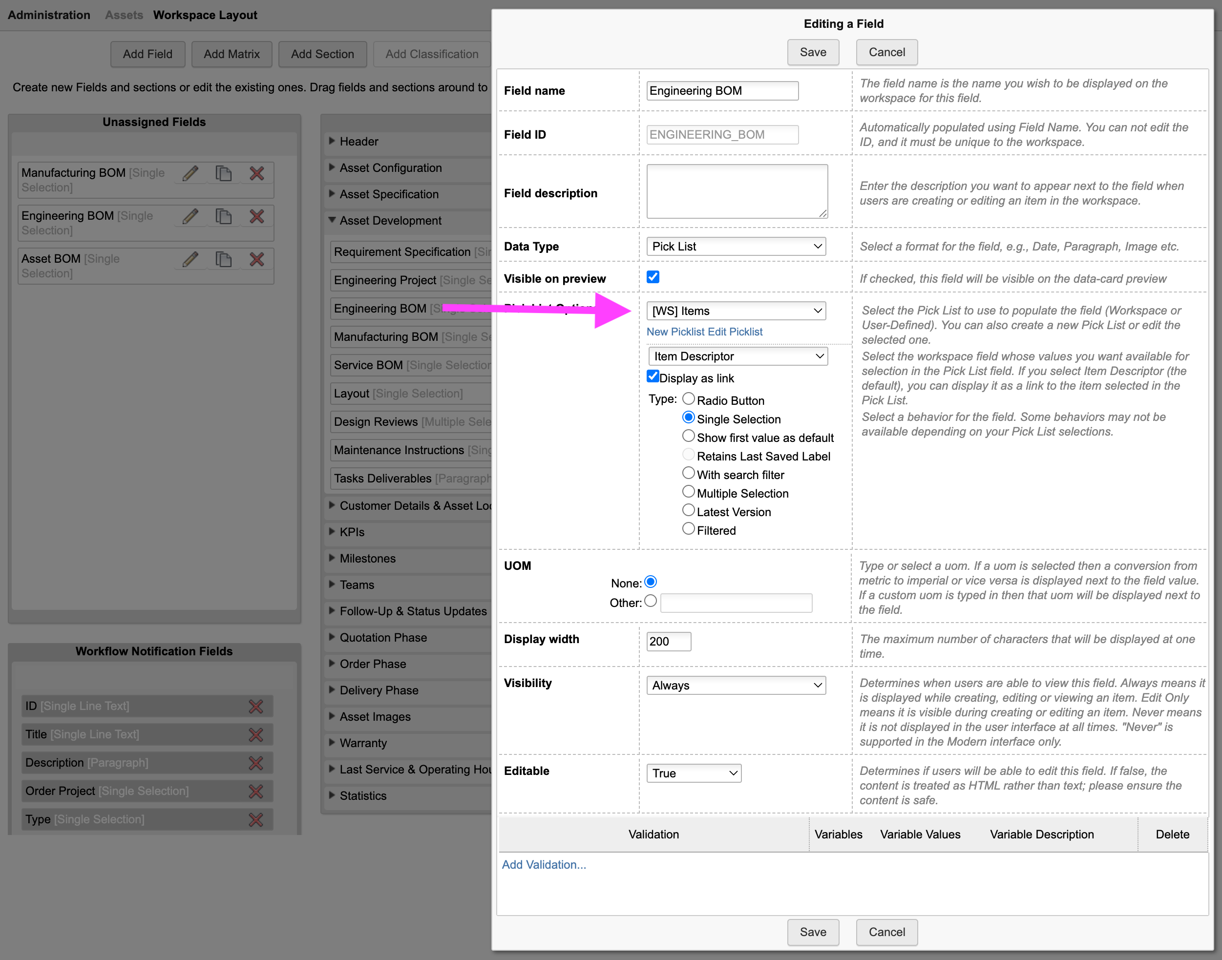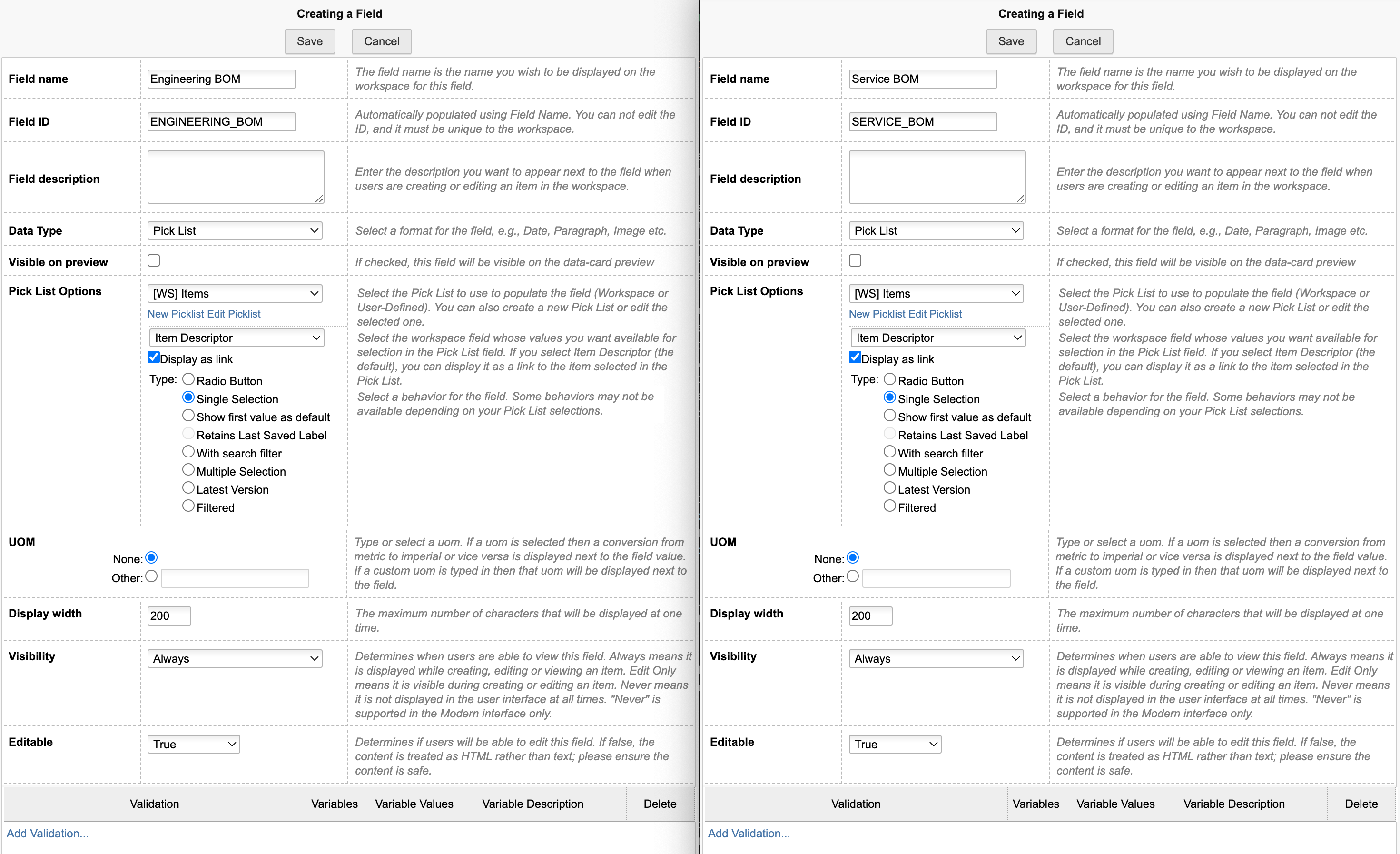 | Bugfix | Fields of type BOM UOM Pick List threw an error | |