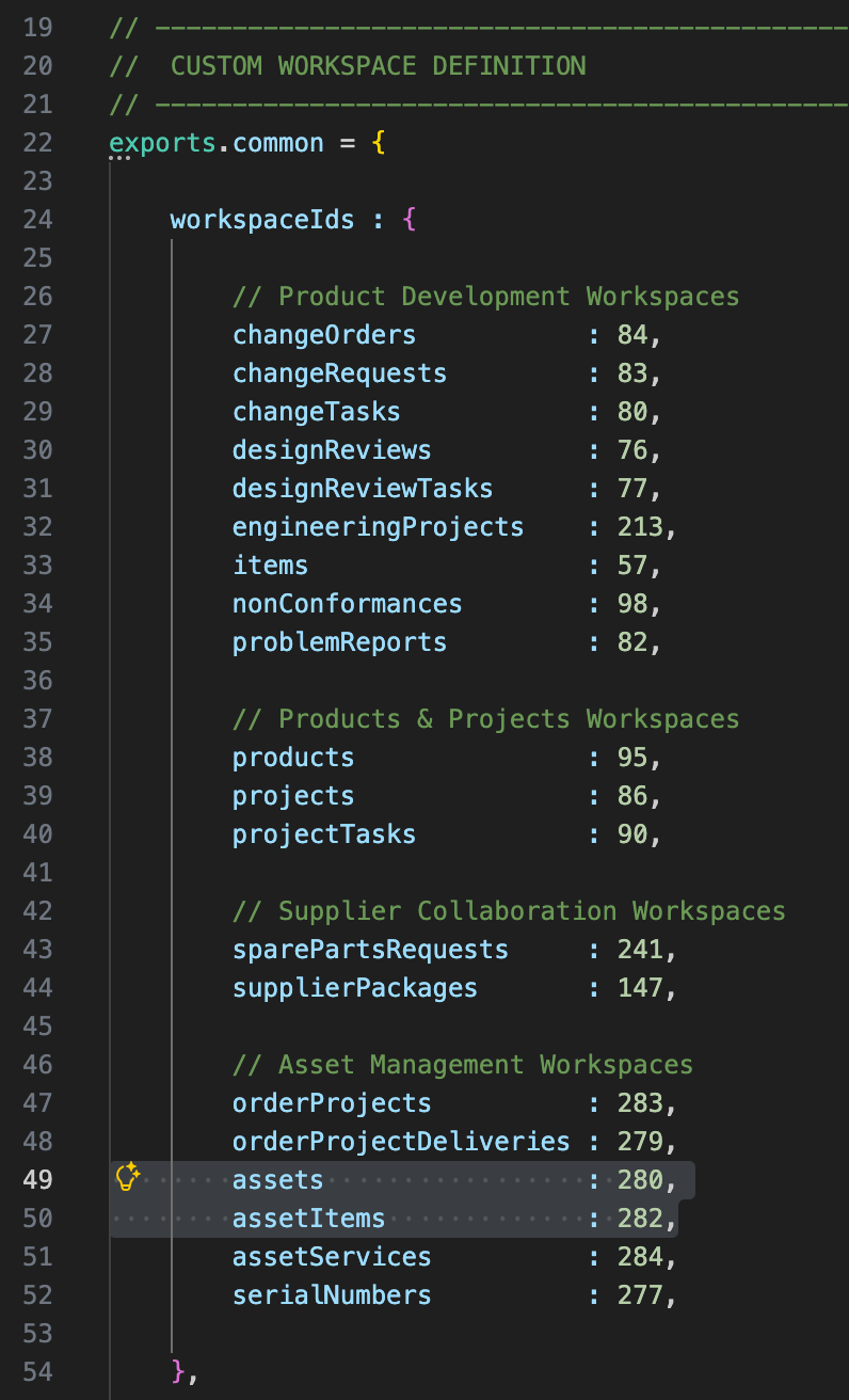 | exports.common.workspaces.items.defaultBOMView | 'Tree Navigator' | The default BOM view to be used for the BOM display. If the defined view does not exist, the default BOM view will be used instead. For best performance, it is recommended to use a BOM view containing only the columns Descriptor, Number and Quantity. |