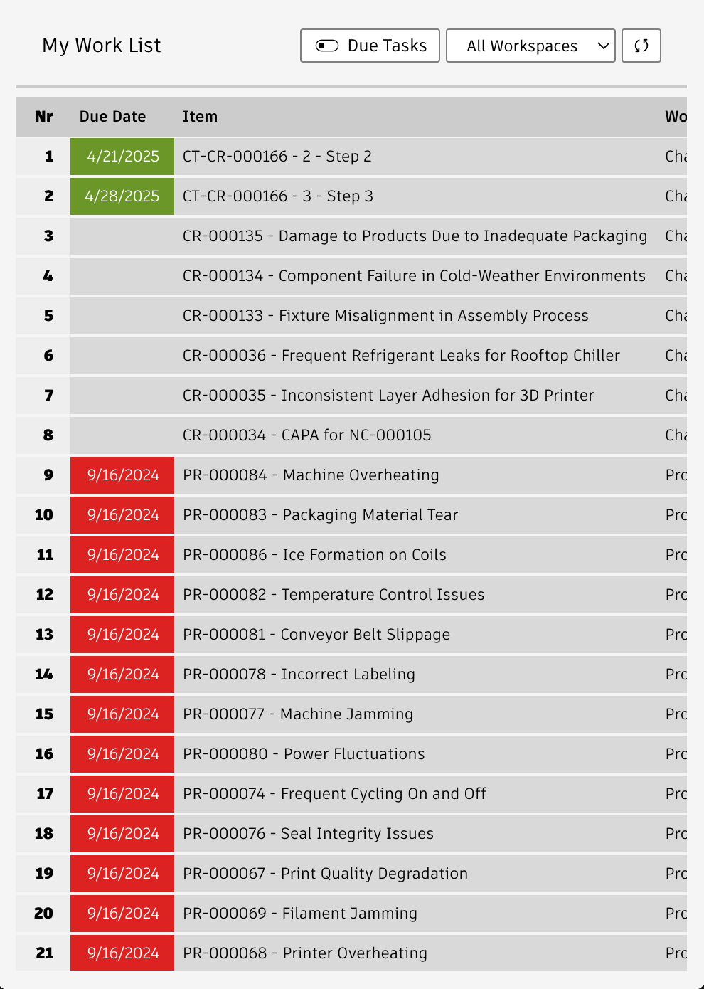 Open the outstanding work list for any active user of your PLM tenant and update each of the given processes to ensure that they progress.