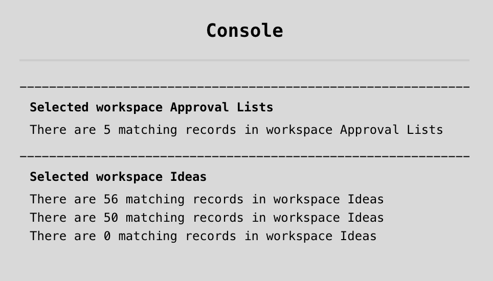 When a workspaces is selected, all lists to the right will be filtered automatically to only show items being related to the selected workspace. The text filter entered in the global header also still applies (if used).