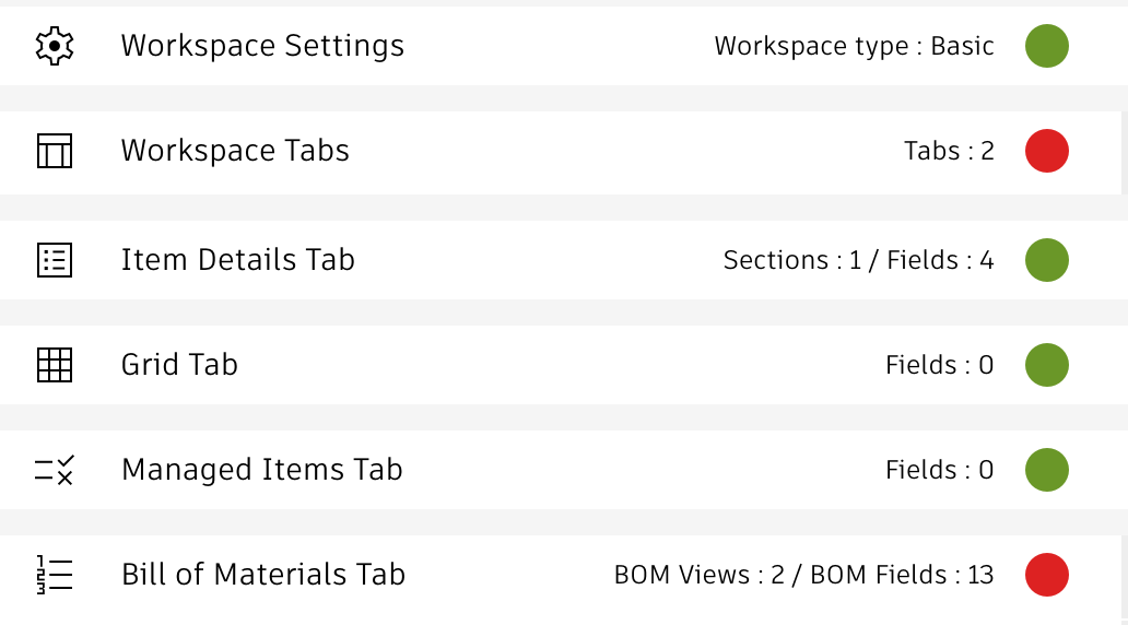 - BOM = BOM tab configuration setings, counters inidicate number of BOM views