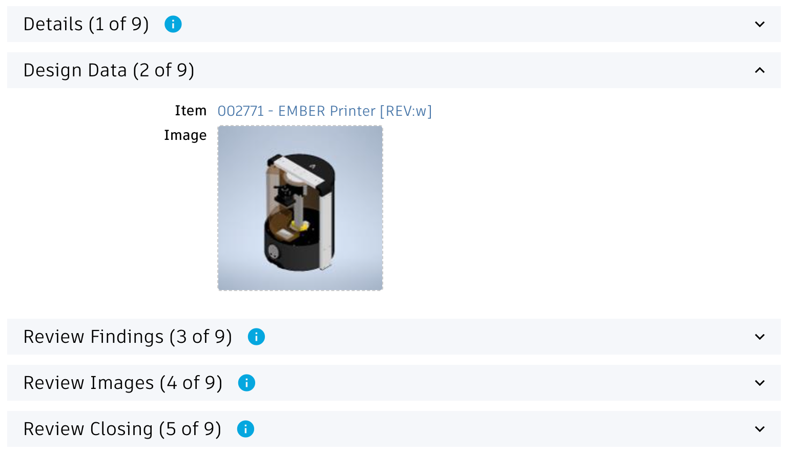 | sectionsOrder | ['Basic', 'Technical Details', 'PDM Data'] | Defines the order of the sections being shown, defined by an array with list of section names |