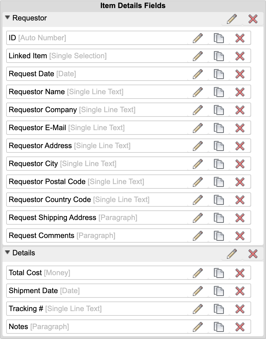 | fieldsIncluded | [] | Restrict the Details display to a defined list of fields (defined by field ID) |