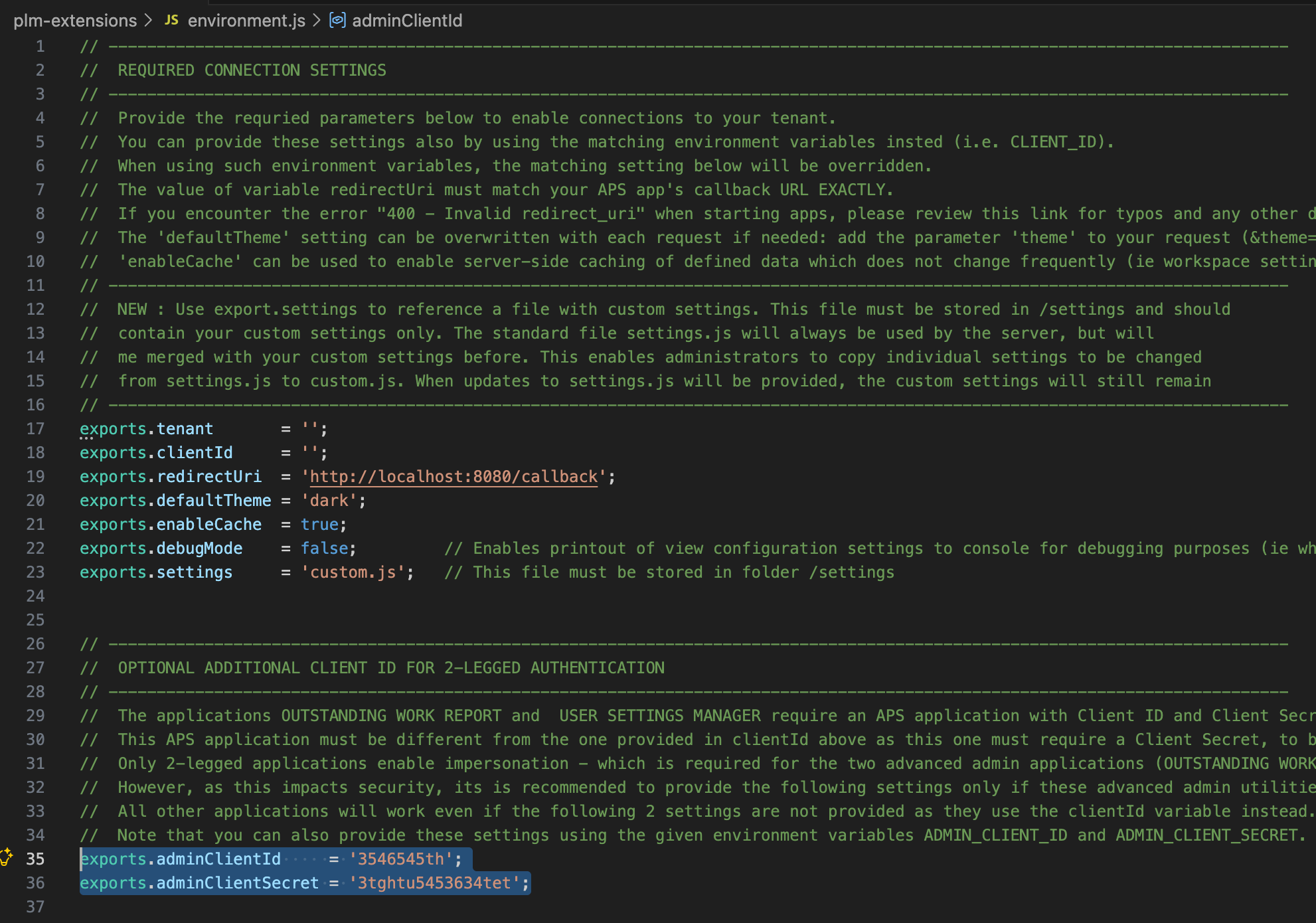 This utility makes use of impersonation to adjust the views and preferences of other users. This requires a 2-legged-authentication with an APS application based on Client ID and Client Secret. As this weakenes the security, it is recommended to proivde the additional settings required by this utility only if it is going to be used. You may want to use this utility witih a local instance of the UX server only to not have the Client Secret stored on a server being accessible globally.