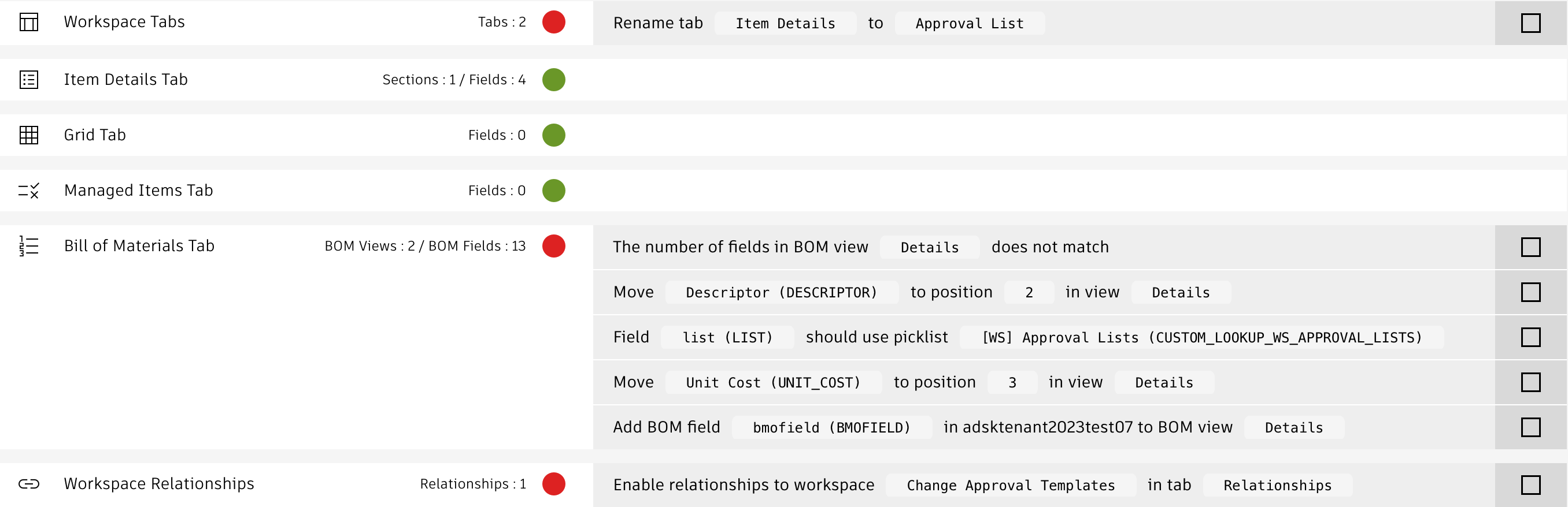 Using the PLM REST API, this utility will analyze the configuration of a selected workspace within two defined tenants. For each difference that is found, the utitlity will provide instructions and shortcuts to perform the given action, for example by using the standard Workspace Manager. This helps to keep business processes in multiple tenants in sync.